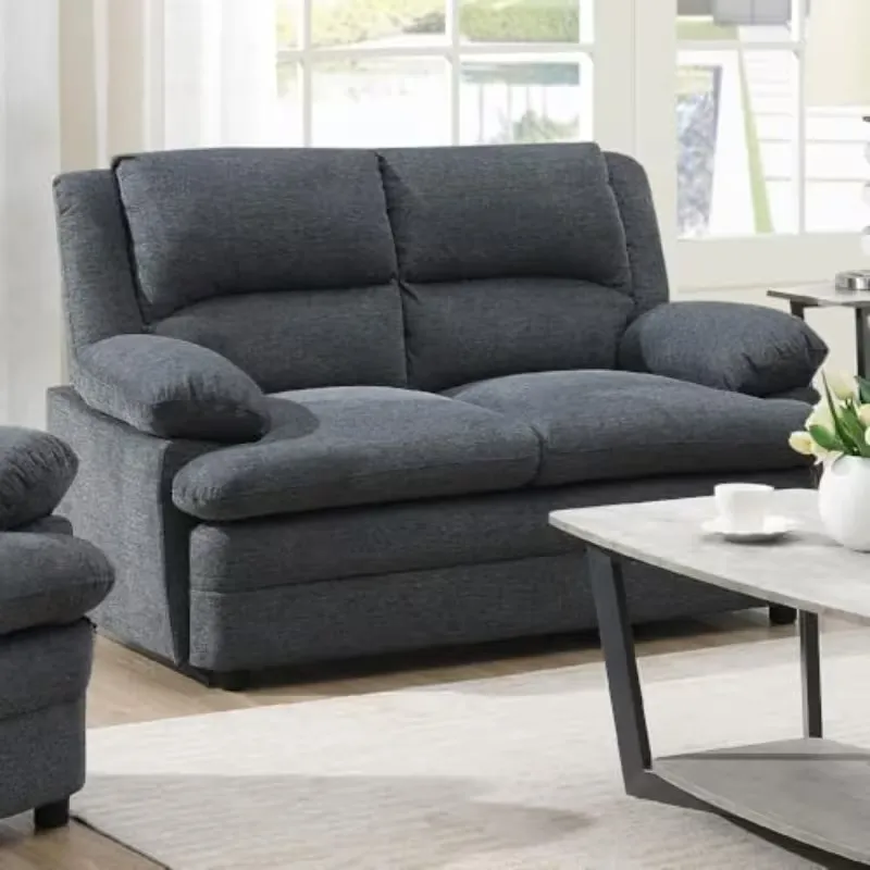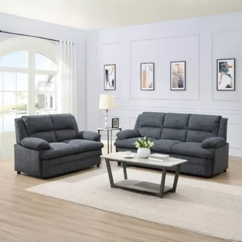 This 2-seater fabric sofa offers comfort and durability with a modern design. Featuring cord embellishments, it fits perfectly in living rooms. Compact, stylish, and electricity-free, it provides a practical and elegant seating solution.