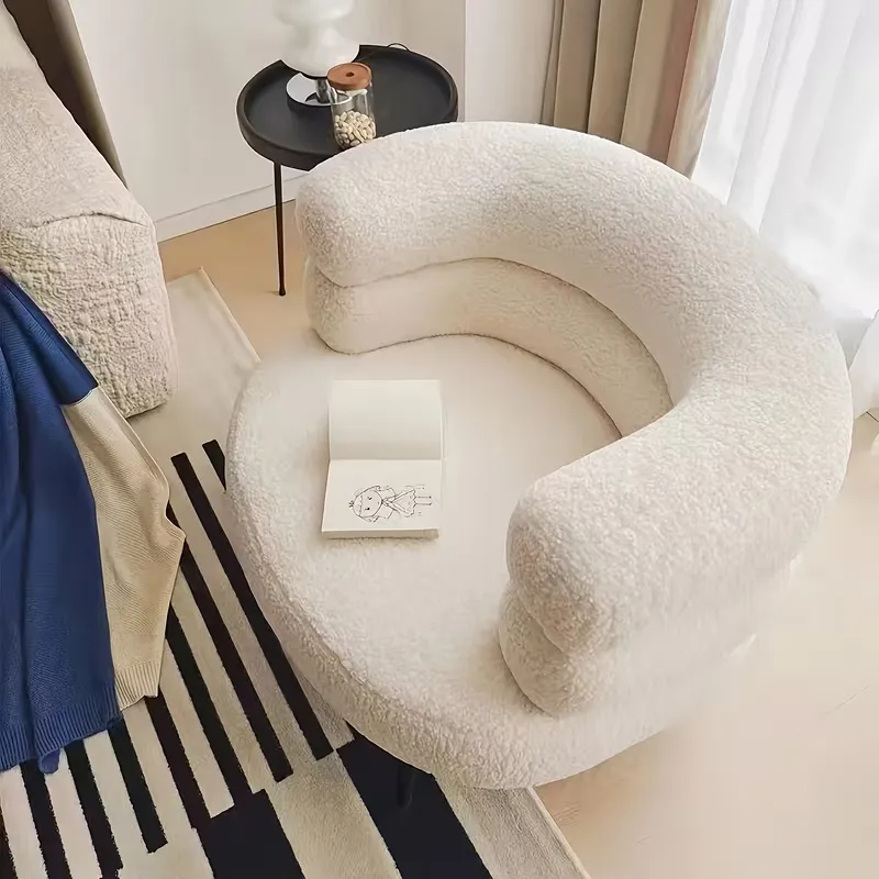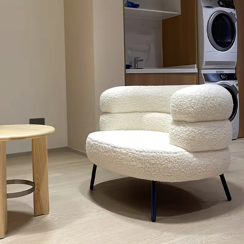 This casual lamb chair features a soft pink backrest and elegant design, perfect for bedrooms, makeup areas, or balconies. Its sturdy metal frame and manual reclining function provide comfort without electricity, combining style with practicality.