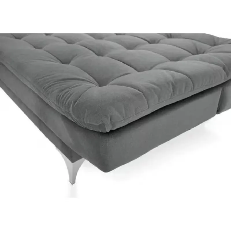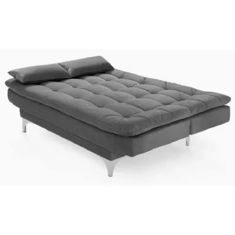 The Eagle sofa bed features a vintage-style design in grey, perfect for living rooms and guest spaces. Comes with two cushions, offers comfortable seating and sleeping, and requires no electricity, combining style and practicality.