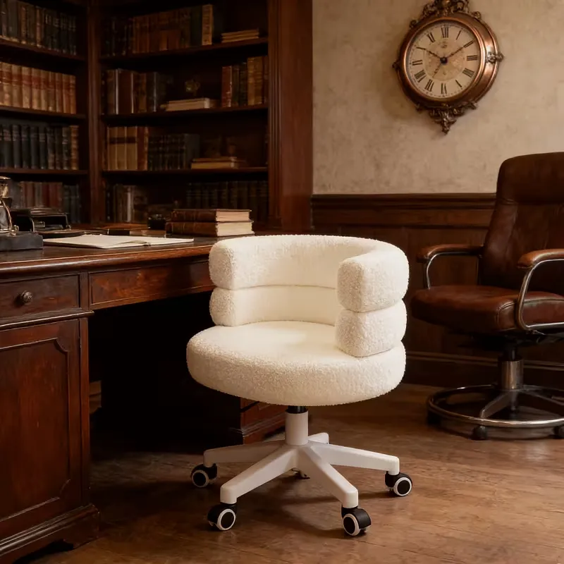 This modern adjustable chair features a 360° rotating seat and a sturdy metal frame with a 5-claw wheel base. Ideal for bedrooms, desks, or living rooms, it combines comfort, mobility, and sleek contemporary design.