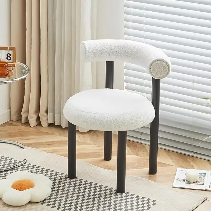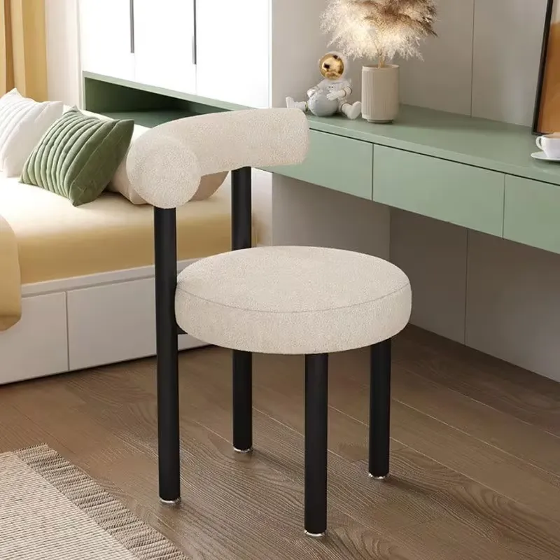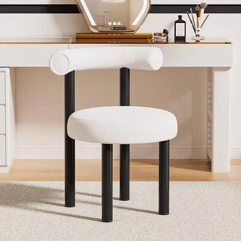 This modern vanity chair features a furry lambswool footrest and supportive back, combining elegance with comfort. Perfect for dressing rooms or makeup areas, it offers a stylish and cozy seating solution for daily use.